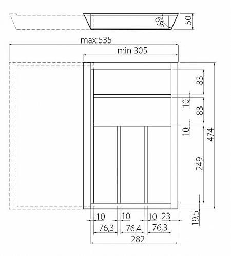 W-CUSTOMI-60L500 უჯრის განყოფილება რეგულირებადი 400-600mm L=500mm GTV #22198