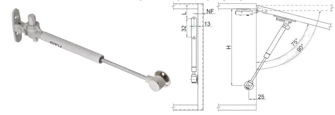ამორტიზატორი მექანიზმით რეგულირებადი 100N GTV (PD-GAM100-N02) #21033